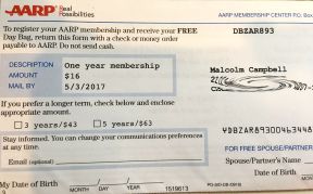 As a kid, I made jokes about Geritol, prune juice, and Depends. Aging provided rich fodder for humor…until the joke turned on me. Note Exhibit 1: a portion of an elaborate membership envelope that recently arrived.